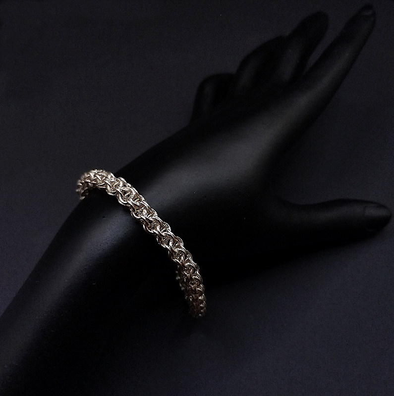 Gefertigt aus hochwertigem 935er Sterlingsilber überzeugt das Armband durch seinen klaren, hellen Glanz und seine robuste, dennoch geschmeidige Haptik. Jedes einzelne Glied wird von Hand geformt, verbunden und sorgfältig poliert, sodass ein langlebiges Schmuckstück entsteht, das durch Qualität und Eleganz besticht.